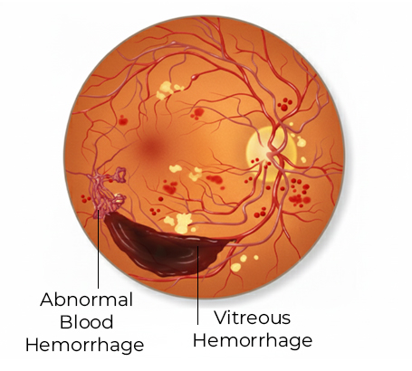 Proliferative Diabetic Retinopathy (PDR) An advanced stage where abnormal new blood vessels grow on the retina, increasing the risk of bleeding, retinal detachment, and rapid vision loss.
