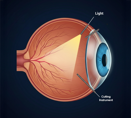 A specialised surgical procedure to remove blood, scar tissue, or traction from within the eye in advanced cases.